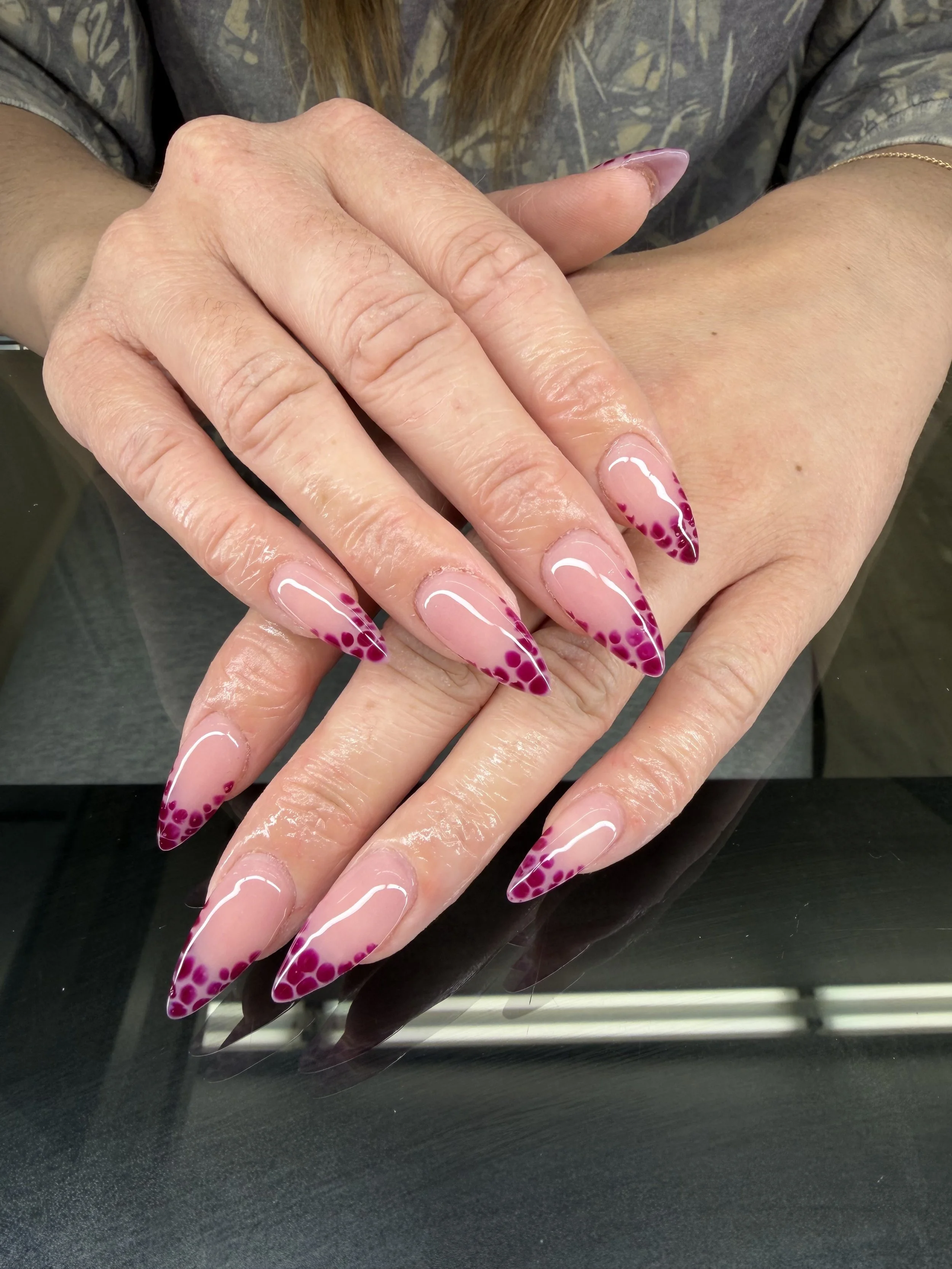 Madison is a licensed nail technician specializing in designs on acrylic and gel, with a love for detailed custom work. Whether it’s a bold set or something soft, Madison is all about bringing your vision to life. Outside the salon, you’ll find her enjoying nature & soaking up the sun. She’s a cat mom & as a Cancer, she brings a calm, intuitive energy to every appointment. She values comfort, creativity, and making every client feel right at home.